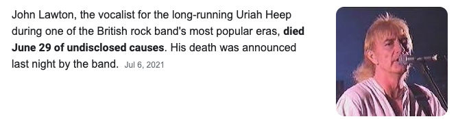 2021년 6월 29일 최대 장수 보컬리스트로 활략 했던 존 노톤이 사망하게 된다.